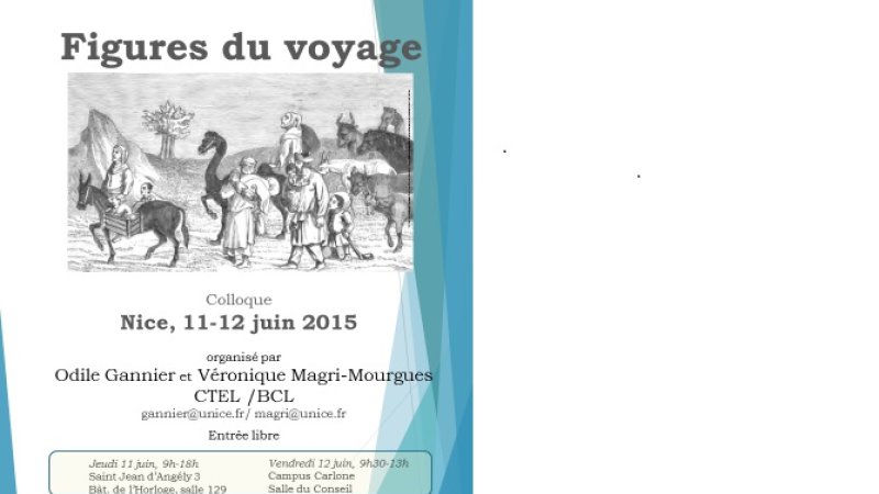 Pour vos agendas Date de l'événement 11/06/2015 - 12/06/2015 Lieu Université Nice Sophia Antipolis Type d'événement Colloques Document pdf Figures du voyage.pdf Organisateur Odile Gannier et Véronique Magri-Mourgues