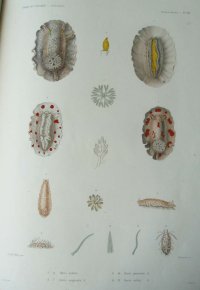 1. Agame des moluques. (Agama moluccana, Less.); 2. Galéote du chili, (Calotes chilensis, Less.); 3. Lophyre du brésil, (Lophyrus brasiliensis, Less.). | |
