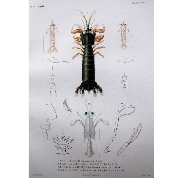1. Squille de Lesson. (Squilla Lessonii, Guér.) 2. Erychte narwal. (Erychtus narwal, Guér.) 3. et 4. détails. 5. Erychte de Latreille. (Erychtus Latreillii, Guér.) 6. et 7. détails. 8. Alime tétracanthure. (Alima tetracanthura, Latr.) 9. à 13. détails.