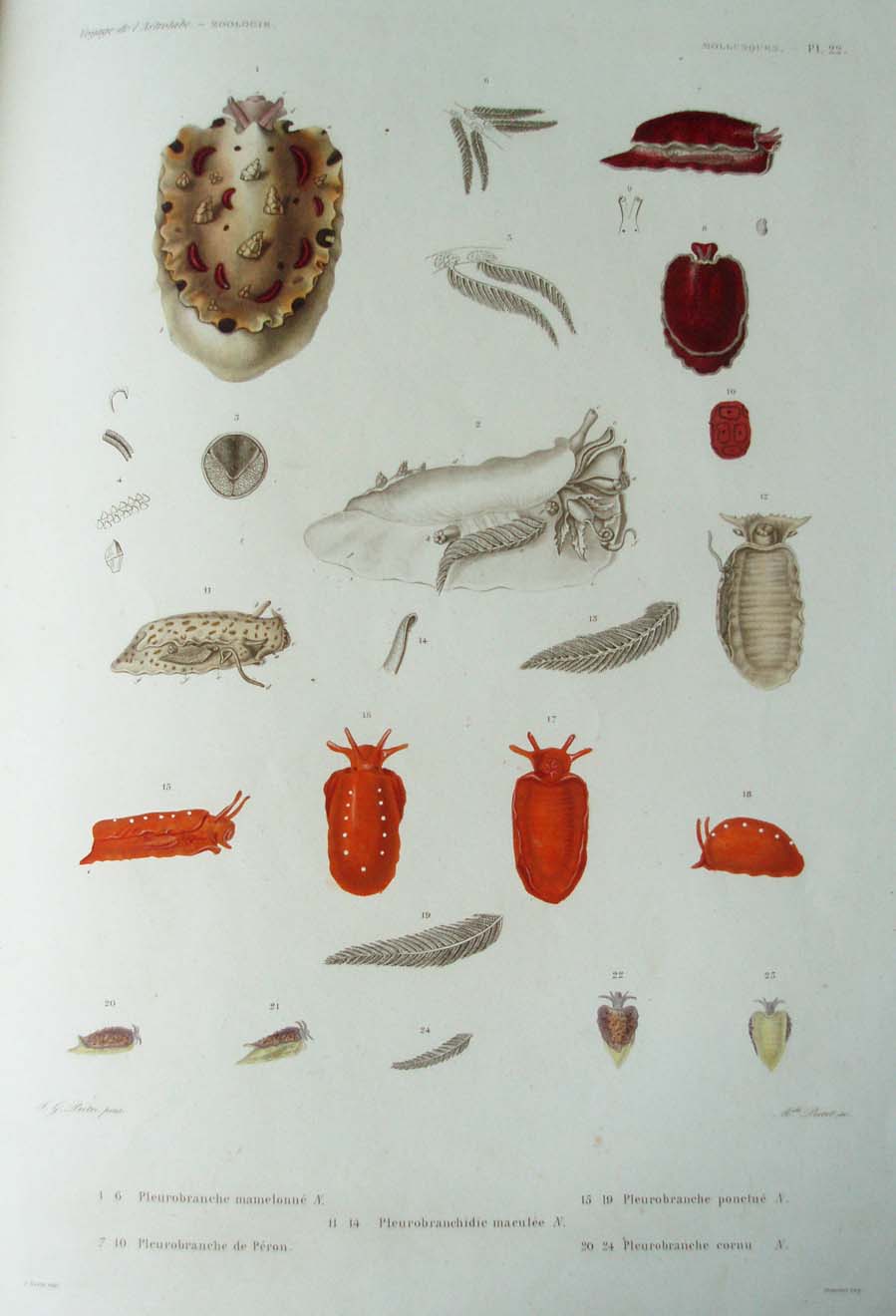 1.6. Pleurobranche mamelonné. N. 7. 10. Pleurobranche de Péron. 11. 14. Pleurobranchidie maculée. N. 15. 19. Pleurobranche ponctué. N. 20. 24. Pleurobranche cornu. N.