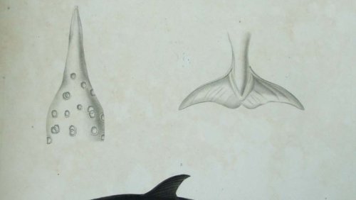 Deux dauphins avec un nez et une queue en détail.