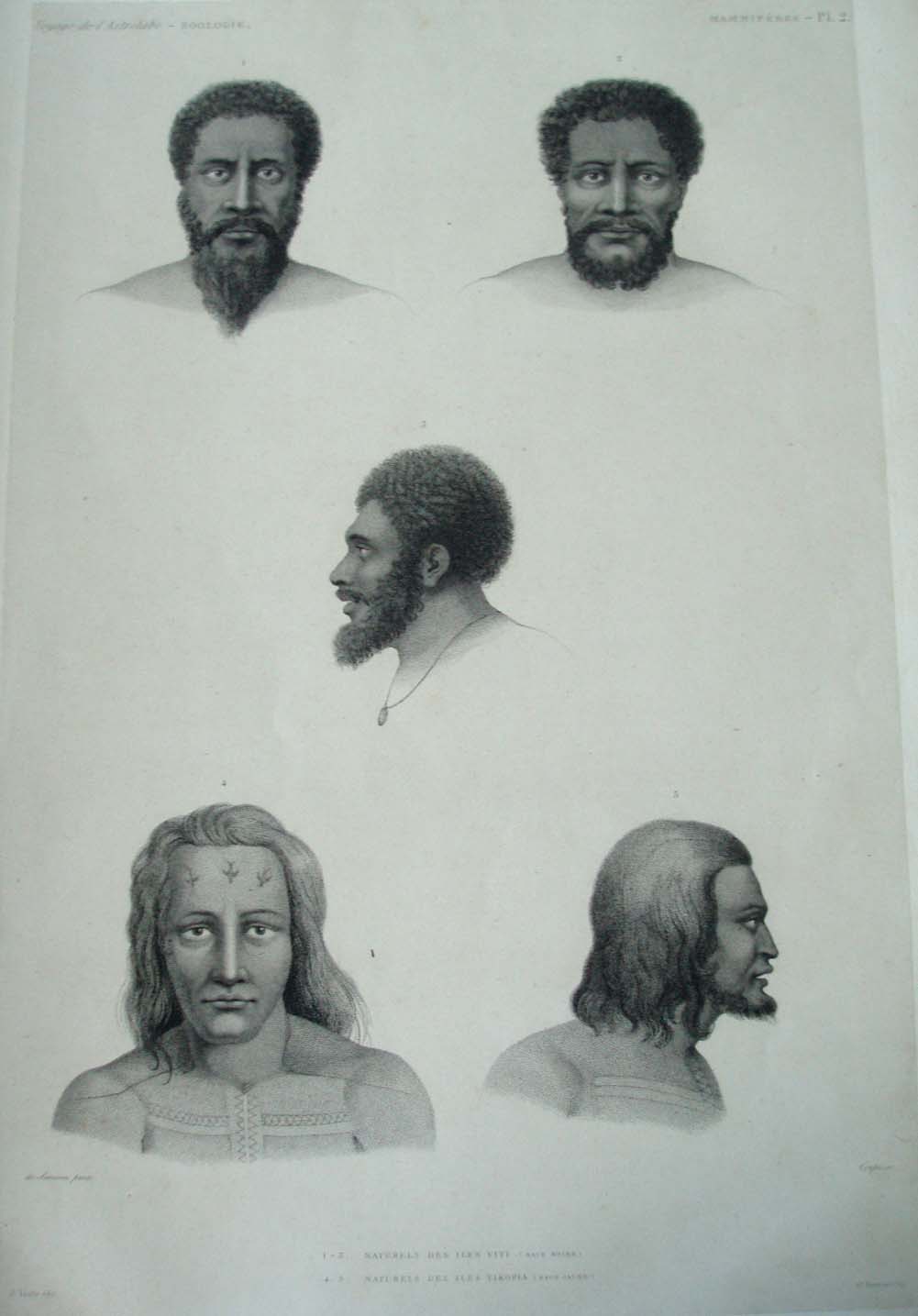 1.-3. Naturels des Iles Viti. (Race Noir) 4-5. Naturels des Iles Tikopia. (Race Jaune)