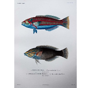 1.Girelle Pao. (Julis quadricolor, Less.) Ile de Taïti. 2.Girelle à Demi Parée. (Julis semidecorata, Less.) Ile Maurice.